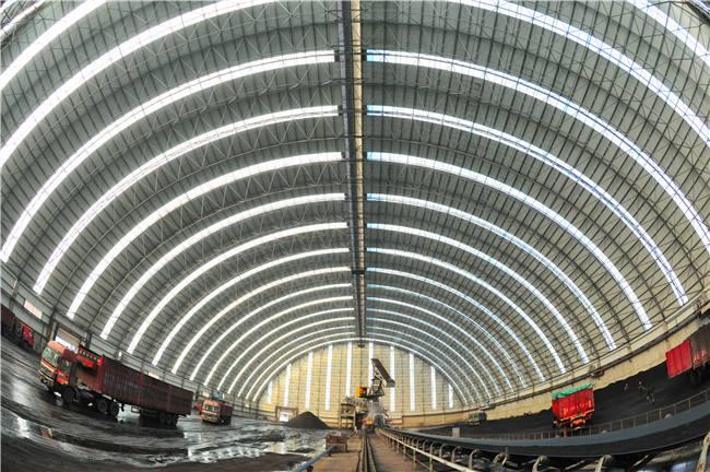 堆场料场封闭式主体结构为新型的钢南开网架结构,维修结构为钢结构南开不锈钢板和纤维增强塑料灯具,其外形以南开网架式和平板为主,连接柱南开施工自由,设置喷雾自动喷水系统,从而可以实现棚内所有物料的覆盖,减少物料在运输过程中的损耗,起到防尘的作用,减少工厂关闭后的二氧化硫排放量,50mg/m3颗粒排放量小于10mg/m3,非常适合低能耗。低闭库自动感应反应对库存轮胎进行清洁,确保轮胎不受道路污染;封闭的储存区可从源头控制粉尘污染,控制无序排放。